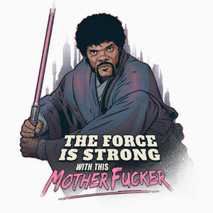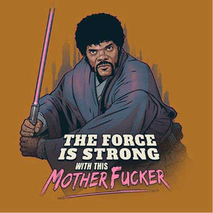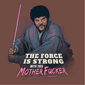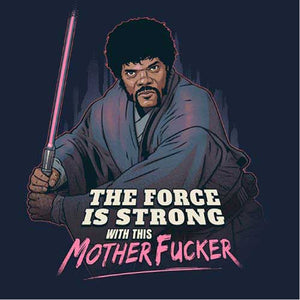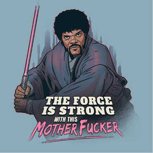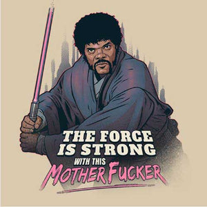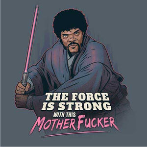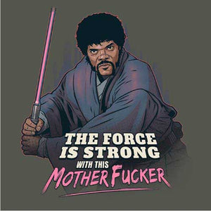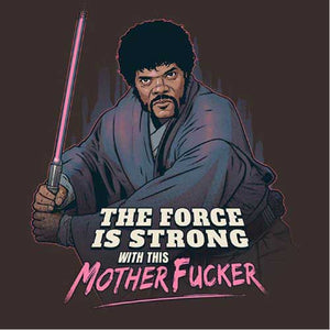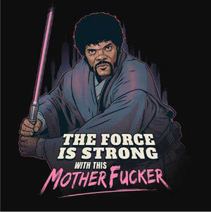 Qu’y a-t-il de plus cool qu’un t-shirt ciné mêlant Star Wars et Pulp Fiction ? L’expression pleine de politesse Motherfucker est la signature de Samuel L. Jackson. Il la prononce dans presque tous ses films, parfois un grand nombre de fois comme dans Jackie Brown, et bien sûr Pulp Fiction ! C’est au film culte de Quentin Tarantino qu’on s’est intéressés ici, en fusionnant Jules Winnfield avec Mace Windu, pour un rendu absolument culte. D’après les rumeurs, George Lucas aurait hésité à inclure la réplique The Force is strong with this motherfucker dans la prélogie, quel dommage… On répare cette injustice avec ce tee-shirt Star Wars aussi drôle que badass !