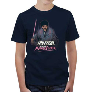 Qu’y a-t-il de plus cool qu’un t-shirt ciné mêlant Star Wars et Pulp Fiction ? L’expression pleine de politesse Motherfucker est la signature de Samuel L. Jackson. Il la prononce dans presque tous ses films, parfois un grand nombre de fois comme dans Jackie Brown, et bien sûr Pulp Fiction ! C’est au film culte de Quentin Tarantino qu’on s’est intéressés ici, en fusionnant Jules Winnfield avec Mace Windu, pour un rendu absolument culte. D’après les rumeurs, George Lucas aurait hésité à inclure la réplique The Force is strong with this motherfucker dans la prélogie, quel dommage… On répare cette injustice avec ce tee-shirt Star Wars aussi drôle que badass !