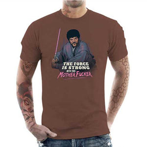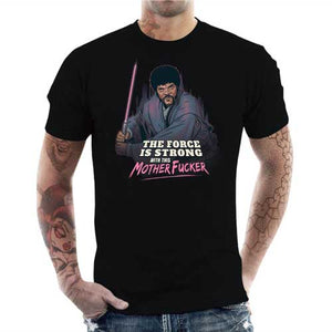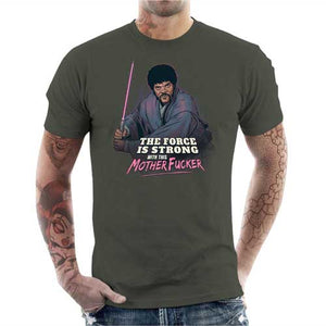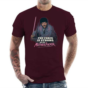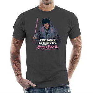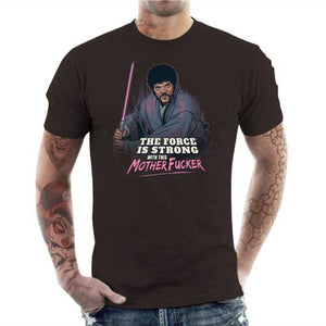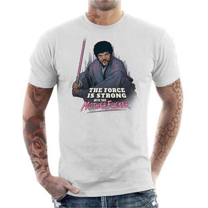 Qu’y a-t-il de plus cool qu’un t-shirt ciné mêlant Star Wars et Pulp Fiction ? L’expression pleine de politesse Motherfucker est la signature de Samuel L. Jackson. Il la prononce dans presque tous ses films, parfois un grand nombre de fois comme dans Jackie Brown, et bien sûr Pulp Fiction ! C’est au film culte de Quentin Tarantino qu’on s’est intéressés ici, en fusionnant Jules Winnfield avec Mace Windu, pour un rendu absolument culte. D’après les rumeurs, George Lucas aurait hésité à inclure la réplique The Force is strong with this motherfucker dans la prélogie, quel dommage… On répare cette injustice avec ce tee-shirt Star Wars aussi drôle que badass !