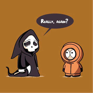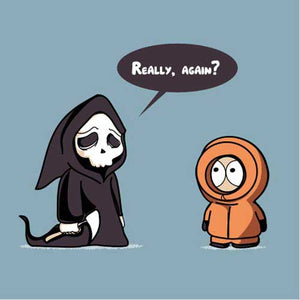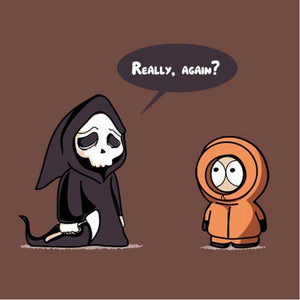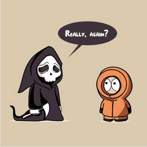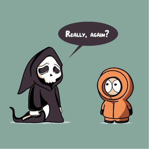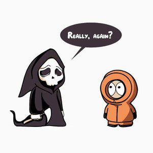 Le ton et l’humour irrévérencieux de South Park ont forgé sa légende, et Kenny y est sans doute pour quelque chose. Voir mourir le pauvre Kenneth McCormick à chaque épisode, notamment dans les premières saisons, était un plaisir sadique sans cesse renouvelé ! De quoi rendre le personnage plutôt familier de la mort, et nous donner du même coup cette idée de t-shirt désopilant ! Un must-have pour les fans.