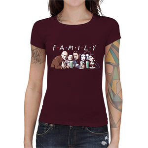 Que se passerait-il si la Famille Addams s'installait au Central Perk ? Ce design revisite l’affiche culte de Friends, en remplaçant les six amis emblématiques par les membres iconiques de la famille la plus macabre du cinéma. Gomez, Morticia, Mercredi, Fétide et les autres prennent la pose, créant un contraste hilarant entre l’univers joyeux de la sitcom et l’ambiance gothique et décalée des Addams. Ce t-shirt est un must-have pour les fans de pop culture, d’humour noir et de crossover inattendus. Affirmez votre style avec ce mash-up parfait entre comédie et morbide chic !