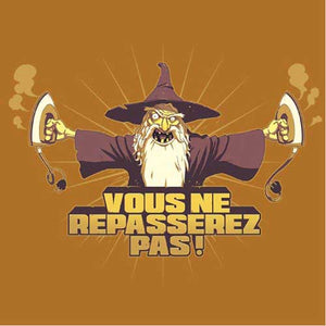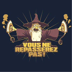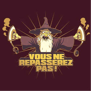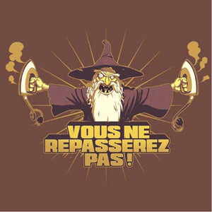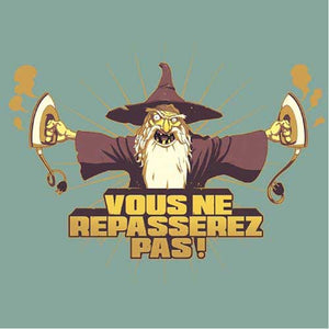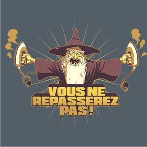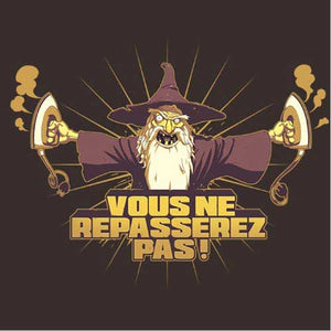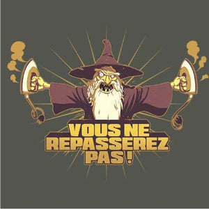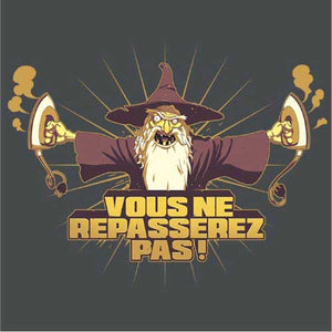 Les fans du Seigneur des Anneaux connaissent bien la célèbre réplique de Gandalf, “Vous ne passerez pas / You shall not pass” lâchée lors de son terrible combat face au Balrog ! Checkpoint a fait de ce moment culte et épique un tee-shirt complètement délirant, qui à défaut de les gouverner tous, va tous les faire rire !