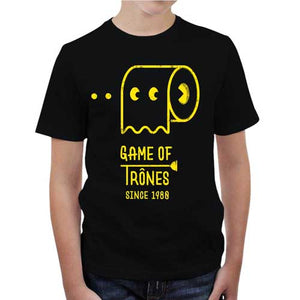 Avec ce t-shirt humoristique, on peut vous garantir que vous n’allez laisser personne insensible ! Si la hype Game of Thrones est quelque peu retombée, on n’a pas pour autant oublié la série culte adaptant les livres de George R. R. Martin. Alors pour se remémorer les glorieux moments passés aux côtés de Jon Snow, Tyrion et Daenerys, quoi de mieux qu’un retour sur le trône ? D’accord, celui-là n’est pas en fer, mais en montant dessus vous aurez moins de chances de finir à six pieds sous terre. Drôle et original, ce tee-shirt Game of Thrones adresse en outre un joli clin d'œil à Pac Man !