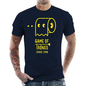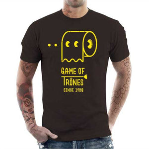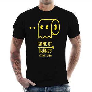 Avec ce t-shirt humoristique, on peut vous garantir que vous n’allez laisser personne insensible ! Si la hype Game of Thrones est quelque peu retombée, on n’a pas pour autant oublié la série culte adaptant les livres de George R. R. Martin. Alors pour se remémorer les glorieux moments passés aux côtés de Jon Snow, Tyrion et Daenerys, quoi de mieux qu’un retour sur le trône ? D’accord, celui-là n’est pas en fer, mais en montant dessus vous aurez moins de chances de finir à six pieds sous terre. Drôle et original, ce tee-shirt Game of Thrones adresse en outre un joli clin d'œil à Pac Man !