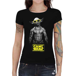 À force de rester coincé sur Dagobah à ressasser son échec face à Palpatine, Yoda a fini par mal tourner. Gonflette, tatouages et look de bad boy, voilà le Jedi prêt à en découdre à l’aide de son gang jusqu’aux confins de la bordure extérieure. Si la Force est toujours avec lui, alors ça laisse présager du pire ! Un tee-shirt aussi badass que barré pour les amoureux de Star Wars !