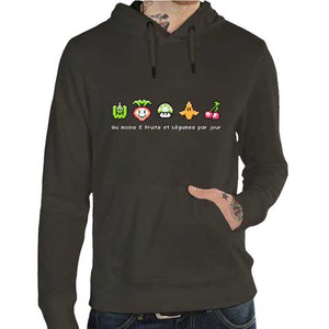 Nous, les geeks, on tourne à cinq fruits et légumes par jour au minimum, comme l’atteste bien ce t-shirt Mario ! Des cerises, champignons et radis qu’on va ingurgiter pour gagner une vie, avoir des capacités spéciales, ou bien qu’on va envoyer à la face des Koopas, Bob-ombs, et autres Maskass. Même les bananes sont primordiales, histoire de faire déraper nos adversaires sur Mario Kart dans la dernière ligne droite ! Un tee-shirt qui sent bon les pixels et le rétrogaming, pour montrer avec humour que vous aussi, vous savez manger sainement… Du moins, sur votre console !
