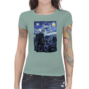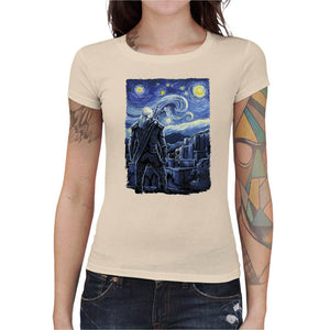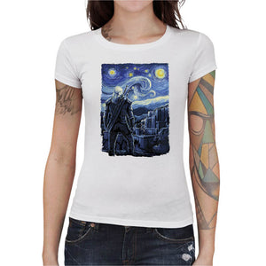 Quand la fantasy rencontre l’impressionnisme ! Ce design unique réinvente Geralt de Riv dans un univers inspiré de Van Gogh et sa célèbre Nuit étoilée. Perché au sommet d’une montagne, le Sorceleur contemple un paysage vibrant et tourmenté, reprenant les somptueux décors de The Witcher 3. Le ciel tourbillonne dans une danse de couleurs, contrastant avec la silhouette imposante du Loup Blanc. Une fusion parfaite entre l’art et le jeu vidéo, mêlant mystère et poésie. Idéal pour les fans de The Witcher et d’illustrations artistiques, ce t-shirt offre un hommage unique à la saga culte et à la peinture impressionniste.