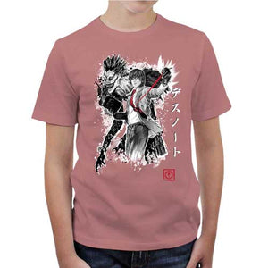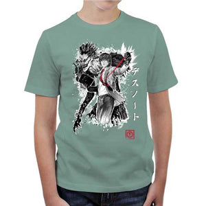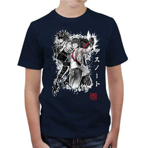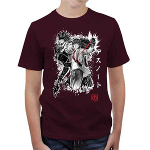 Chez Checkpoint on adore parodier Death Note, c’est pourquoi on est toujours motivés à vous proposer de somptueux nouveaux t-shirts ! Et quelle meilleure manière de rendre hommage à cette œuvre phare que de donner la part belle à Light Yagami, semant la mort en lettres de sang avec son Death Note, et bien sûr au mystérieux Dieu de la mort Ryuk, qui le suit partout comme une ombre. Un duo inoubliable, ici représenté sur ce tee-shirt d’une façon ultra stylisée et badass. Un must-have pour tous les fans du diabolique manga de Tsugumi Ōba et Takeshi Obata.