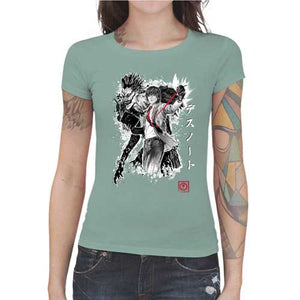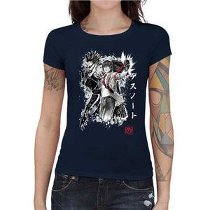 Chez Checkpoint on adore parodier Death Note, c’est pourquoi on est toujours motivés à vous proposer de somptueux nouveaux t-shirts ! Et quelle meilleure manière de rendre hommage à cette œuvre phare que de donner la part belle à Light Yagami, semant la mort en lettres de sang avec son Death Note, et bien sûr au mystérieux Dieu de la mort Ryuk, qui le suit partout comme une ombre. Un duo inoubliable, ici représenté sur ce tee-shirt d’une façon ultra stylisée et badass. Un must-have pour tous les fans du diabolique manga de Tsugumi Ōba et Takeshi Obata.