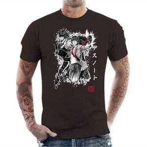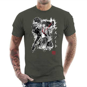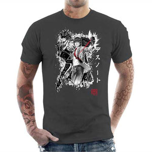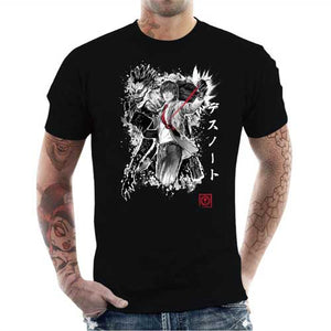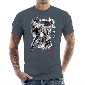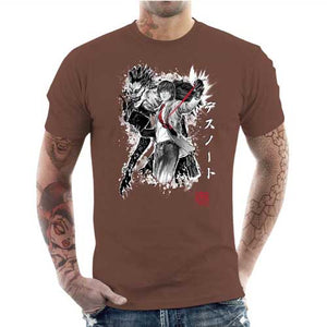 Chez Checkpoint on adore parodier Death Note, c’est pourquoi on est toujours motivés à vous proposer de somptueux nouveaux t-shirts ! Et quelle meilleure manière de rendre hommage à cette œuvre phare que de donner la part belle à Light Yagami, semant la mort en lettres de sang avec son Death Note, et bien sûr au mystérieux Dieu de la mort Ryuk, qui le suit partout comme une ombre. Un duo inoubliable, ici représenté sur ce tee-shirt d’une façon ultra stylisée et badass. Un must-have pour tous les fans du diabolique manga de Tsugumi Ōba et Takeshi Obata.