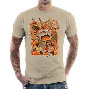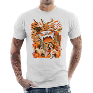 Plongez dans le chaos délicieux du t-shirt "Great Ramen Attack", où un gigantesque bol de ramen façon kaiju sème la panique dans une ville ! Cette illustration mêle culture pop japonaise et humour : les habitants fuient, les buildings s’effondrent, et les nouilles, œufs et le kombu débordent avec appétit. Inspirée des films de monstres japonais, cette scène apocalyptico-gastronomique fera sourire les fans d’anime, de kaiju et de bonne bouffe. Un design original, dynamique et totalement assumé, pour celles et ceux qui aiment quand la culture geek se mélange à la culture food.