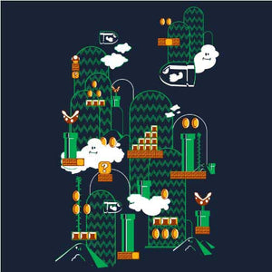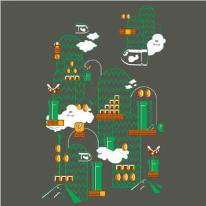 Si vous adorez l’emblématique plombier de Nintendo, ce splendide tee-shirt sera un des joyaux de votre collection ! En sortant Super Mario Bros en 1985, la firme de Kyoto et Shigeru Miyamoto ont marqué de leur empreinte l’histoire du jeu vidéo, et imposé la plate-forme comme l’un des genres les plus populaires des glorieuses générations 8 et 16 bits. Avec leurs graphismes mignons et chatoyants, les Super Mario sont reconnaissables au premier coup d'œil, et c’est cet univers inoubliable qu’on a voulu représenter sur ce modèle. Un t-shirt qui donne envie de rallumer sa NES !