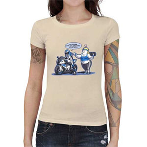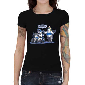 Lorsque vous vous êtes mis en tête de faire de la moto, vous avez tout de suite imaginé poser le genou, laisser sur place les automobilistes et faire tomber les records de vitesse ? Pas de doute, vous étiez fait pour une grosse sportive. Mais peut-être appréciez-vous aussi les belles demoiselles aux formes généreuses ? Dans tous les cas, comme à moto, mieux vaut être dessus que dessous… Un t-shirt qui va bien faire marrer vos copains motards.