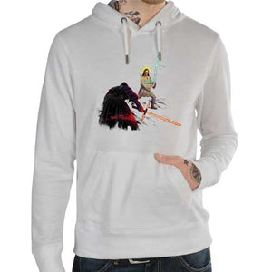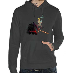 Holy Wars, ou l’un de nos t-shirts Star Wars les plus WTF ! Il nous a bien sûr été inspirés par le très étonnant sabre laser de Kylo Ren, qui a déchaîné les passions lors de la diffusion du teaser de l’Episode VII, Le réveil de la force. On voyait alors le jeune Solo dégainer son arme d’une façon ultra badass, scène malheureusement coupée au montage. Checkpoint l’a immortalisée avec cette parodie hilarante, où Kylo Ren va se mesurer à un sacré adversaire… Le ramènera-t-il sur le droit chemin, à l’instar de Rey ? Un tee-shirt SW unique au monde, que vous allez adorer porter !