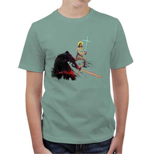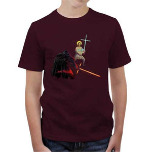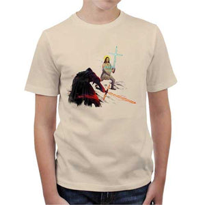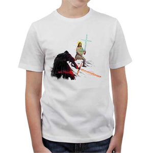 Votre enfant a déjà bien grandi, et vous souhaitez continuer sa formation de jedi geek ? Pas besoin de risquer de le blesser avec un sabre laser, on a beaucoup mieux pour lui: ce T-shirt enfant geek - Holy Wars !