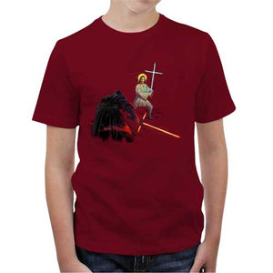 Holy Wars, ou l’un de nos t-shirts Star Wars les plus WTF ! Il nous a bien sûr été inspirés par le très étonnant sabre laser de Kylo Ren, qui a déchaîné les passions lors de la diffusion du teaser de l’Episode VII, Le réveil de la force. On voyait alors le jeune Solo dégainer son arme d’une façon ultra badass, scène malheureusement coupée au montage. Checkpoint l’a immortalisée avec cette parodie hilarante, où Kylo Ren va se mesurer à un sacré adversaire… Le ramènera-t-il sur le droit chemin, à l’instar de Rey ? Un tee-shirt SW unique au monde, que vous allez adorer porter !