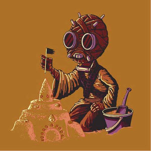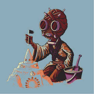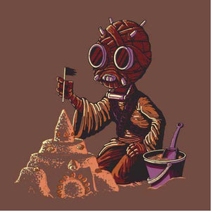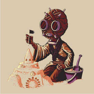Mais ici, pas question pour ce Tusken d’embêter Shmi ou Luke Skywalker, trop occupé qu’il est à faire un joli château de sable. Un t-shirt Star Wars aussi adorable qu’original !