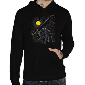 Le t-shirt "Impressionist Swordsman" capture l’essence de Guts, héros de la série Berserk, dans une représentation unique et poétique. Recouvert de son armure noire, Guts se tient dans une posture presque animale, portant sur son épaule son épée immense. Le design s’inspire de l’impressionnisme, rappelant l’ambiance de La Nuit étoilée, mais avec des traits plus fins et un style moins chargé. Ce t-shirt allie la force brute du guerrier à la beauté subtile de la peinture impressionniste, créant un contraste fascinant et captivant pour les fans de Berserk et d’art