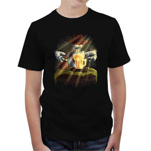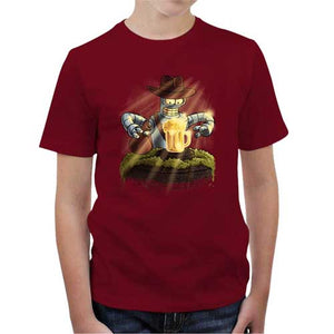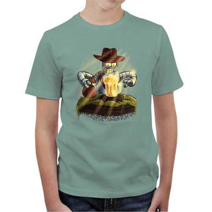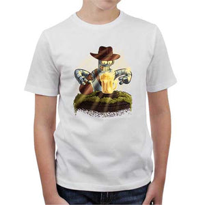Jamais à court d’idées délirantes, Checkpoint revisite la scène introductive iconique d’Indiana Jones et les aventuriers de l’arche perdue avec l’irrésistible Bender ! Cette fois, pas d’idole sacrée en vue, mais un breuvage qui a bien plus de valeur pour le robot culte de la série Futurama: la bière ! Un tshirt crossover ciné/séries qui va faire mourir de rire votre entourage… et probablement lui donner soif.