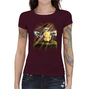 Jamais à court d’idées délirantes, Checkpoint revisite la scène introductive iconique d’Indiana Jones et les aventuriers de l’arche perdue avec l’irrésistible Bender ! Cette fois, pas d’idole sacrée en vue, mais un breuvage qui a bien plus de valeur pour le robot culte de la série Futurama: la bière ! Un tshirt crossover ciné/séries qui va faire mourir de rire votre entourage… et probablement lui donner soif.