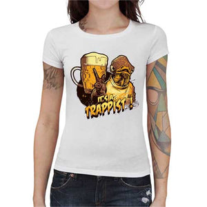 It’s a trappist ! Voici sans doute l’un de nos tee-shirts Star Wars les plus surpuissants, et l’un de nos jeux de mots les plus hilarants ! En bon connaisseur que vous êtes, vous avez peut-être déjà goûté ces bières à haute fermentation brassées par les moines trappistes. On ne vous dira pas si on était en train d’en déguster une lorsqu’il nous est venu l’idée de faire appel à l’Amiral Ackbar et sa célébrissime réplique It’s a trap lors de la bataille spatiale d’Endor, mais le résultat est aussi classe qu’improbable… Un t-shirt Star Wars tout simplement indispensable !
