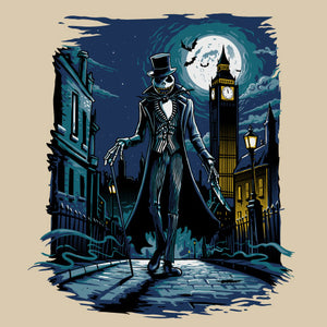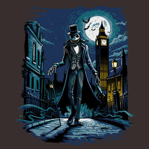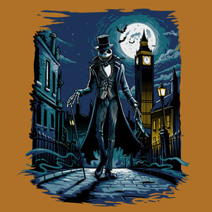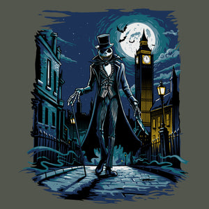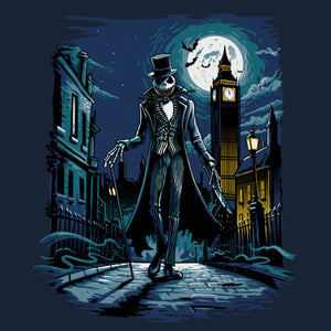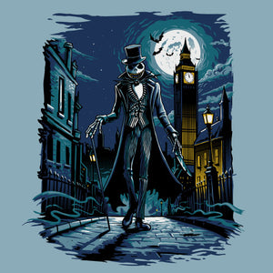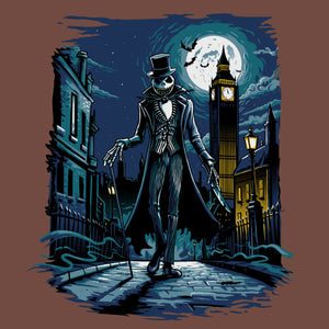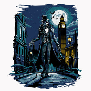 Quand la fantaisie gothique rencontre l’horreur historique ! Ce design revisite le mythe de Jack l’Éventreur en le fusionnant avec le célèbre Jack Skellington. Sous un ciel londonien brumeux, on le voit déambuler dans les rues sombres, canne élégante dans une main, lame effilée dans l’autre, prêt à hanter la nuit. Ce mash-up entre L’Étrange Noël de Monsieur Jack et l’une des figures criminelles les plus effrayantes de l’histoire crée un contraste saisissant entre l’innocence macabre du personnage de Tim Burton et l’aura terrifiante du tueur londonien. Un t-shirt idéal pour les fans de gothique, de pop culture et de légendes urbaines.