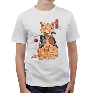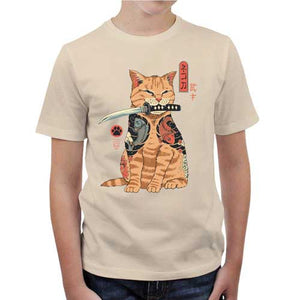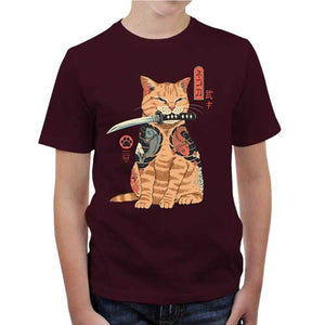 Si vous adorez la culture japonaise et les matous, il est bien possible que ce t-shirt ait déclenché chez vous un pur coup de foudre ! Avec ses tatouages hyper stylés, son air roublard et son petit katana tout juste à sa taille, ce chat semble paré pour intégrer les terribles Yakuzas ! Autant vous dire que si vous oubliez de lui verser ses croquettes à l’heure prévue, et de nettoyer sa litière de fond en comble, c’en sera fini de votre vie… Un tee-shirt Checkpoint tout en style et en badasserie !