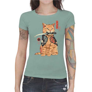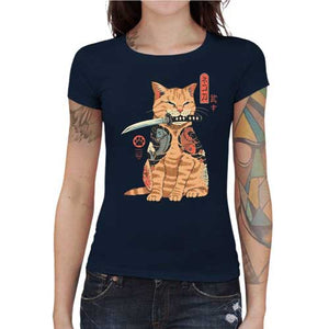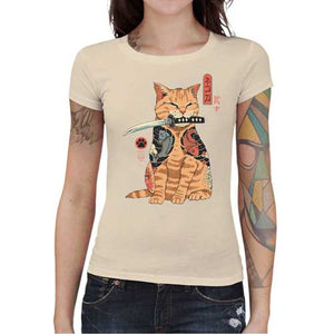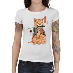 Si vous adorez la culture japonaise et les matous, il est bien possible que ce t-shirt ait déclenché chez vous un pur coup de foudre ! Avec ses tatouages hyper stylés, son air roublard et son petit katana tout juste à sa taille, ce chat semble paré pour intégrer les terribles Yakuzas ! Autant vous dire que si vous oubliez de lui verser ses croquettes à l’heure prévue, et de nettoyer sa litière de fond en comble, c’en sera fini de votre vie… Un tee-shirt Checkpoint tout en style et en badasserie !
