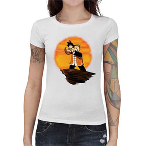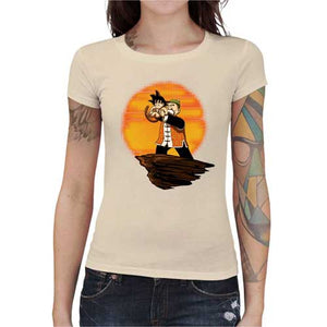 Son Goku n’était pas destiné à devenir le roi de la jungle comme Simba, mais à conquérir la terre entière ! Heureusement, une mauvaise chute et l’éducation pleine de sagesse de Son Gohan lui feront prendre un autre chemin… La scène introductive emblématique du Roi Lion, détournée avec des héros de Dragon Ball, un T shirt must-have signé Checkpoint !