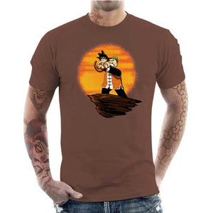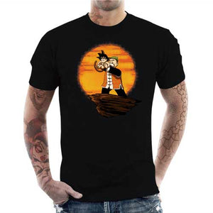 Son Goku n’était pas destiné à devenir le roi de la jungle comme Simba, mais à conquérir la terre entière ! Heureusement, une mauvaise chute et l’éducation pleine de sagesse de Son Gohan lui feront prendre un autre chemin… La scène introductive emblématique du Roi Lion, détournée avec des héros de Dragon Ball, un T shirt must-have signé Checkpoint !