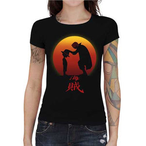 Un des moments les plus emblématiques du début de One Piece, et symbole du lien très profond qui unit Luffy et Shanks le Roux ! Alors trop jeune pour prendre la mer, le héros se voit confier par le pirate son chapeau de paille, qui deviendra non seulement son emblème, mais aussi son surnom… Un tee-shirt tout en style et en émotion !