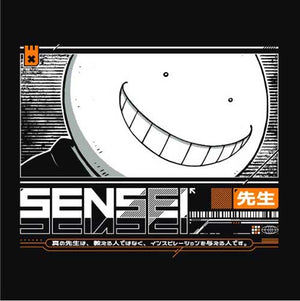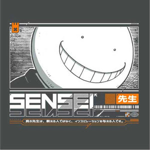 Voilà un sourire reconnaissable entre mille ! C’est bien sûr celui de Koro-sensei, qui mérite une place de choix parmi notre collection de t-shirts sensei, mot qui signifie professeur en japonais. Cet enseignant venu tout droit du manga et anime Assassination Classroom est atypique à plus d’un titre ! Physiquement tout d’abord, avec ses tentacules et sa drôle de tête qui change de couleur. Et mentalement d’autre part, avec son caractère à la fois facétieux et bienveillant. Bien que ses élèves aient pour mission de l’assassiner, on n’imagine pas la classe 3-E sans lui ! Un tee-shirt manga débordant de style.