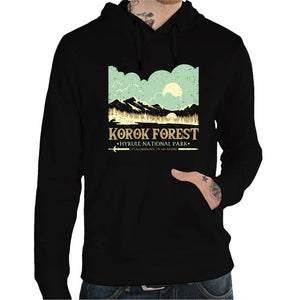 Explorez la magie de la forêt Korok avec ce t-shirt inspiré du célèbre univers de Zelda. L'illustration capture la beauté mystérieuse de la forêt Korok, en la réimaginant comme un parc national américain. Avec l’inscription "Korok National Park", ce design allie aventure et nostalgie, parfait pour les fans du jeu vidéo et les amoureux de la nature. Les détails de la forêt enchantée rappellent les paysages magiques et les secrets cachés de ce monde culte. Ce t-shirt est une invitation à porter un morceau d’épopée vidéoludique, tout en ajoutant une touche de style unique et geek à votre garde-robe.