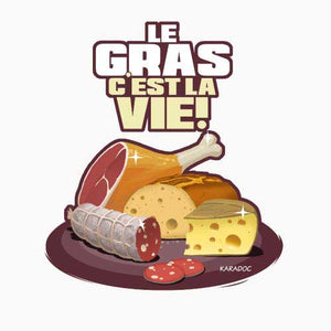 L’ambitieux Karadoc est aussi un gourmand invétéré. Pour lui, la (bonne) bouffe, c’est sacré ! Le grand ami de Perceval est ainsi l’auteur de l’une des répliques cultes de Kaamelott. Le gras, c’est la vie. En voilà un qui a tout compris ! Adeptes de fromage, charcuterie, et autres grands plaisirs de la gastronomie, arborez vous aussi ce tee-shirt désopilant et plein de bon sens.