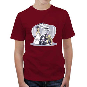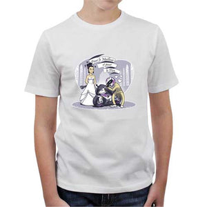 Votre enfant a déjà bien grandi, et vous souhaitez continuer sa formation de motard ? Nous avons un super outil pour lui: ce T shirt Moto Enfant - Le mariage du Motard !