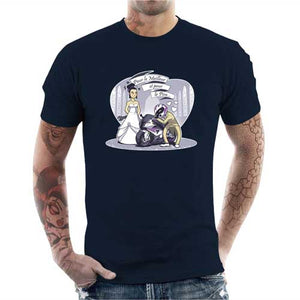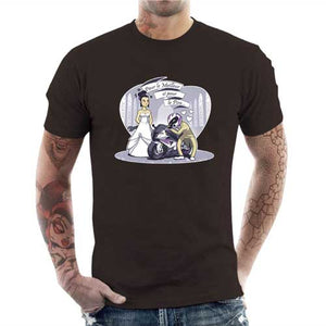 Qu’il soit beau, drôle, intelligent, ou même tout ça en même temps, il a toutes les qualités dont vous rêviez… bref, vous allez l’épouser ! Sauf qu’attention, vous n’épousez pas n’importe qui, vous épousez un motard ! Alors autant vous dire qu’il va falloir faire un ménage à trois, puisque vous ne l’épousez pas seulement lui, mais aussi sa bécane ! Un t-shirt qui va faire son petit effet, en particulier auprès de l’élu(e) de votre vie !