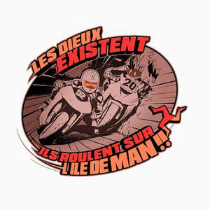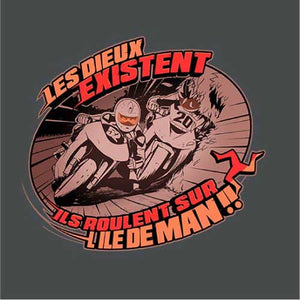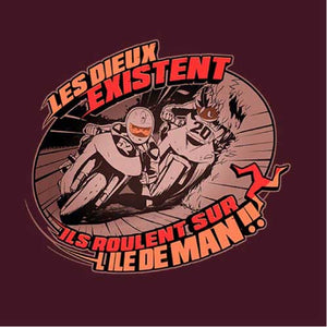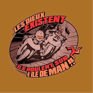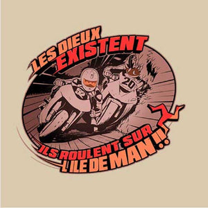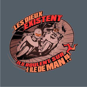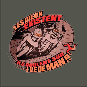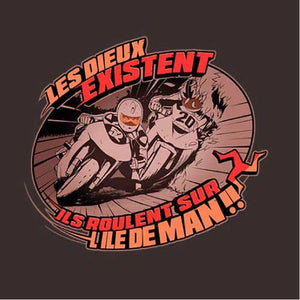 Les Dieux se donnent rendez-vous tous les ans sur l'île de Man pour une course de moto trépidante et acharnée ! Traces de carénages sur le sol, prises d'appuis sur les trottoirs et passage à 300 km/h dans les villages… Le Tourist Trophy, ou TT pour les intimes, une épreuve mythique qu’on a voulu représenter avec une illustration à la fois vintage, stylée et agressive. Un magnifique tee-shirt qui ravira les connaisseurs.