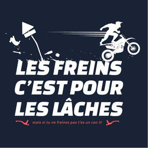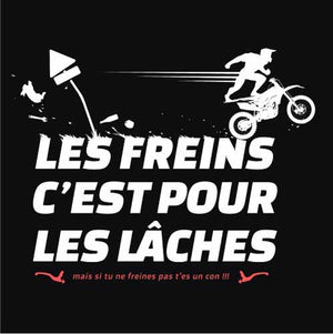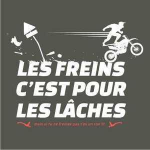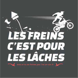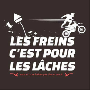 Vous êtes du style chien fou ? Un indécrottable casse-cou ? Une fois lancé, tout n’est plus qu'accélérations de malade et pointes de vitesse qui font sursauter les piétons ? Alors il y a fort à parier que les freins, vous en usez avec parcimonie, voire quand vous n’avez plus d’autre choix du tout. Pour vous, on a prévu un tee-shirt bien badass, qui montre que vous n’avez peur de rien… quitte à en emmerder quelques-uns.