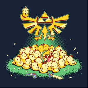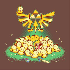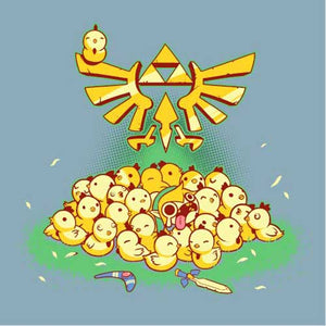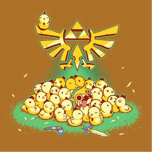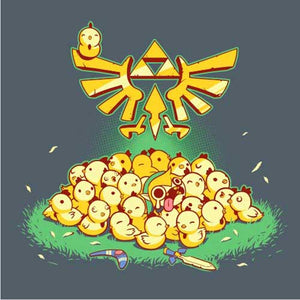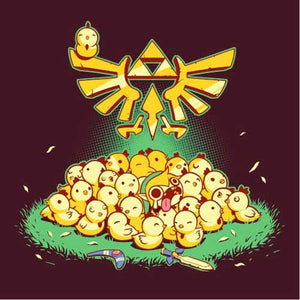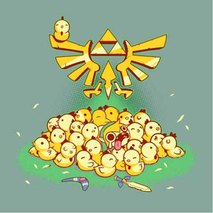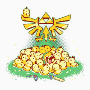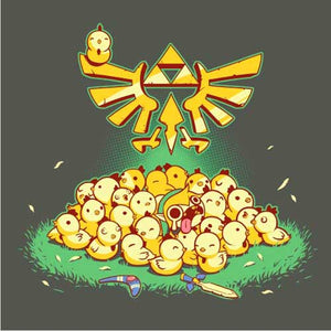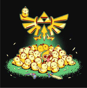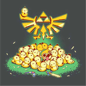 Entre Link et les cocottes, c’est une grande histoire d’amour ! Depuis l’épisode A Link to the Past de la Super Nintendo, le hylien a la possibilité d’embêter les gentilles poupoules, mais gare à ne pas trop en abuser, ou la riposte des volatiles serait terrible… Un tee-shirt mimi tout plein pour les fans de la mythique saga The Legend of Zelda !
