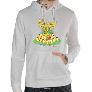 Entre Link et les cocottes, c’est une grande histoire d’amour ! Depuis l’épisode A Link to the Past de la Super Nintendo, le hylien a la possibilité d’embêter les gentilles poupoules, mais gare à ne pas trop en abuser, ou la riposte des volatiles serait terrible… Un tee-shirt mimi tout plein pour les fans de la mythique saga The Legend of Zelda !
