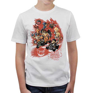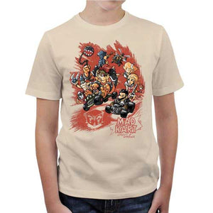 La saga Mario Kart et le film Mad Max 2, dont Fury Road reprend l’esprit, partagent comme point commun d’être des courses de véhicules totalement folles ! Des joutes où tous les coups sont permis, à l’action frénétique. Cela nous a donné l’idée de ce t-shirt Mad Kart bien barré, qui va vous valoir un beau succès auprès de vos amis fans de jeux vidéo et de ciné !