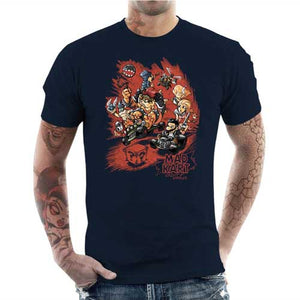 La saga Mario Kart et le film Mad Max 2, dont Fury Road reprend l’esprit, partagent comme point commun d’être des courses de véhicules totalement folles ! Des joutes où tous les coups sont permis, à l’action frénétique. Cela nous a donné l’idée de ce t-shirt Mad Kart bien barré, qui va vous valoir un beau succès auprès de vos amis fans de jeux vidéo et de ciné !