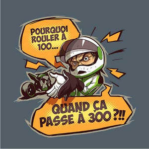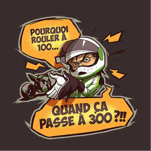 Pourquoi se compliquer la vie quand on peut faire simple ? Pourquoi y aller à pied ou en voiture quand on peut y aller à moto ? Pourquoi rouler à 100 quand ça passe à 300 ? Autant de questions que peut se poser un motard, et qui ont le don de le mettre en pétard ! Alors si vous aussi vous êtes un dingue de vitesse, montrez avec ce tee-shirt énervé que les limitations de vitesse, ce n’est pas ce que vous préférez.