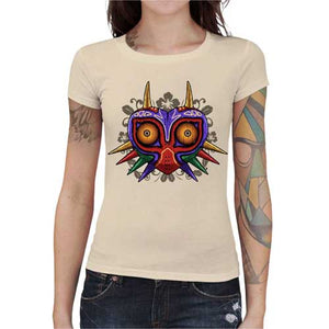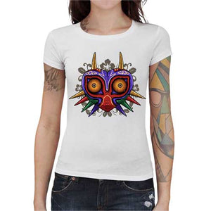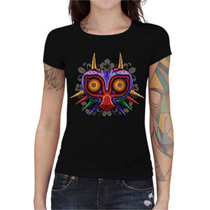 Les fans de The Legend of Zelda auront tous reconnu au premier coup d’oeil ce superbe tee-shirt Majora’s Mask. Sorti sur Nintendo 64 en 2000, l’épisode qui a suivi Ocarina of Time reste encore aujourd’hui l’un des plus cultes de l’histoire de la saga. Avec son ambiance ultra oppressante de fin du monde et sa mécanique très originale des trois jours, des masques et de l’emploi du temps, Majora’s Mask fait figure de véritable ovni vidéoludique. Pour lui rendre hommage, on a fait simple et efficace: représenter le masque diabolique et emblématique de Skull Kid. Un t-shirt Zelda reconnaissable entre mille !