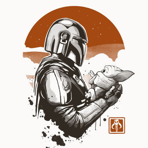 Plongez dans une fusion unique entre science-fiction et art traditionnel avec cette illustration du Mandalorian tenant Baby Yoda devant un somptueux coucher de soleil. Inspirée du style des estampes japonaises, cette scène mêle harmonie et épique, capturant la beauté d’un moment intime entre les deux personnages. Avec des couleurs douces et des détails élégants, ce design séduira les amateurs de l’univers galactique et les passionnés d’art. Disponible sur t-shirts, sweats et tote bags, il apporte une touche raffinée et cosmique à votre style