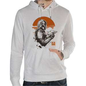 Plongez dans une fusion unique entre science-fiction et art traditionnel avec cette illustration du Mandalorian tenant Baby Yoda devant un somptueux coucher de soleil. Inspirée du style des estampes japonaises, cette scène mêle harmonie et épique, capturant la beauté d’un moment intime entre les deux personnages. Avec des couleurs douces et des détails élégants, ce design séduira les amateurs de l’univers galactique et les passionnés d’art. Disponible sur t-shirts, sweats et tote bags, il apporte une touche raffinée et cosmique à votre style