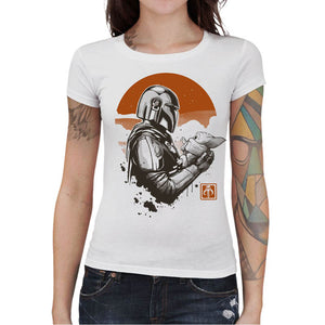 Plongez dans une fusion unique entre science-fiction et art traditionnel avec cette illustration du Mandalorian tenant Baby Yoda devant un somptueux coucher de soleil. Inspirée du style des estampes japonaises, cette scène mêle harmonie et épique, capturant la beauté d’un moment intime entre les deux personnages. Avec des couleurs douces et des détails élégants, ce design séduira les amateurs de l’univers galactique et les passionnés d’art. Disponible sur t-shirts, sweats et tote bags, il apporte une touche raffinée et cosmique à votre style