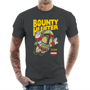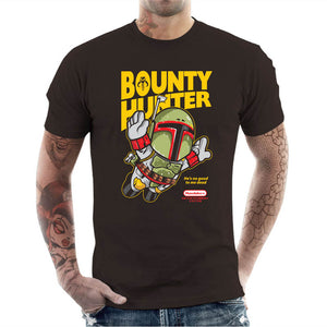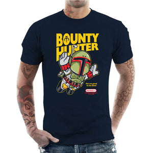 Ce t-shirt revisite une célèbre pochette de jeu vidéo en remplaçant le plombier emblématique par le Mandalorian, le célèbre chasseur de primes de l'univers Star Wars. Avec un clin d'œil à la culture geek, le design mélange l'esthétique rétro du jeu original avec l'armure emblématique du Mandalorien, créant un crossover audacieux et amusant. Les fans des deux univers apprécieront ce design qui fusionne nostalgie du jeu vidéo et passion pour la science-fiction. Un t-shirt parfait pour afficher votre amour pour la pop culture, avec une touche d'humour et un style unique.