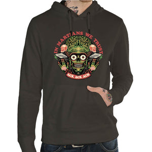 Les premières fraicheurs arrivent, et vous n’êtes plus sûr que votre tee-shirt va suffire ? Pas de panique ! Ce Sweat - In Martians we Trust va tout simplement vous sauver la vie !
