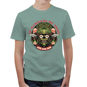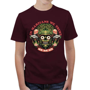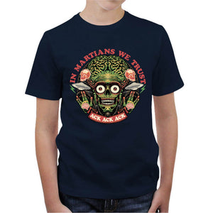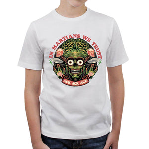 Votre enfant a déjà bien grandi, et vous souhaitez continuer sa formation de jedi geek ? Pas besoin de risquer de le blesser avec un sabre laser, on a beaucoup mieux pour lui: ce T-shirt Enfant Geek - In Martians we Trust !